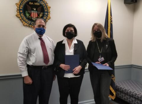 On September 17, Morris County officials presented commendations to Victim Witness Coordinator Donna Pasquariello and Victim Witness Supervisor Amanda Holloway, recognizing their efforts as a part of the Victim Witness Unit on the State v. Hudy Muldrow prosecution.