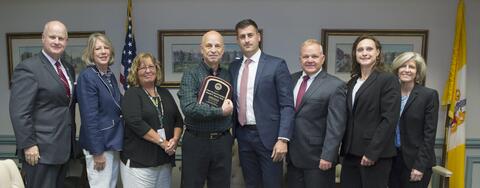 Photo Caption: (From left to right) Morris County Sheriff James M. Gannon, Freeholder Deborah Smith, Freeholder Kathryn DeFillippo, Dr. Ronald Suarez, Chief Assistant Prosecutor Matthew Troiano, Freeholder Director Douglas Cabana, Freeholder Heather Darling, and Deputy Freeholder Director Christine Myers.
