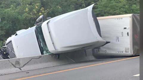 Upon arrival, police found an overturned tractor-trailer, a damaged SUV, and at least one other vehicle involved in a crash at that location.