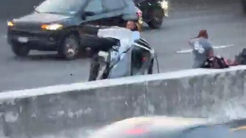 According to preliminary information, about 10 vehicles suffered minor to extensive damage, with one of the cars overturning on the concrete divider.