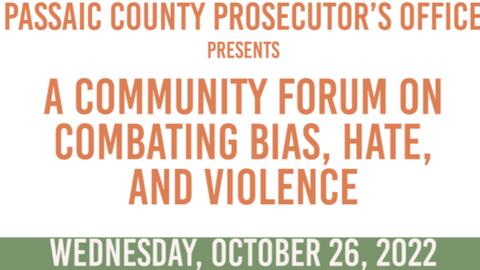 Passaic County officials reported that the PCPO will host a community outreach event introducing a new community forum combating Bias, Hate, and Violence on Wednesday, October 26.