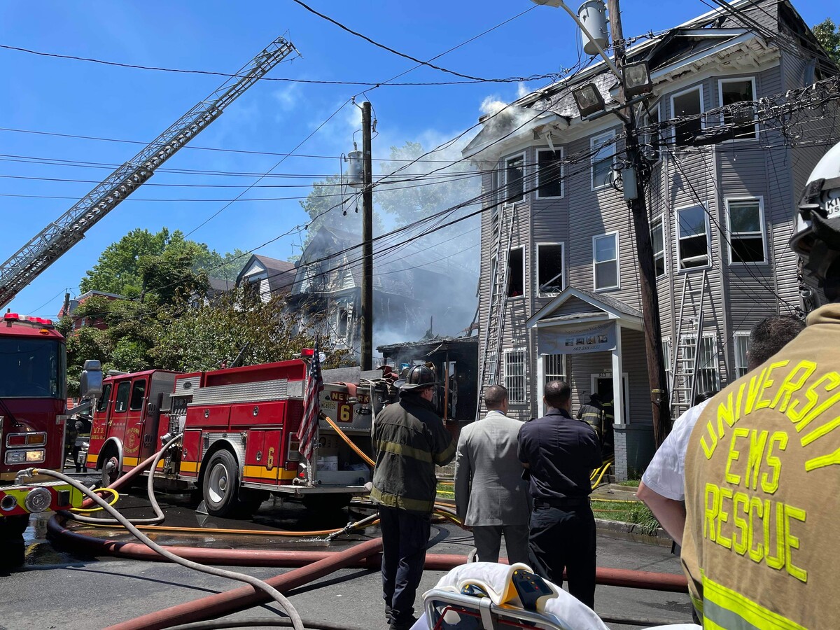 Officials said that the fire quickly extended to 813- 815 South 14th Street, an occupied 3-story wood frame residence, and to 819 South 14th Street, also an occupied 3-story wood frame residence.