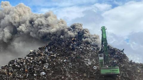A fire burned at a Newark scrap metal facility, sending thick black smoke into the air beginning on Wednesday morning.