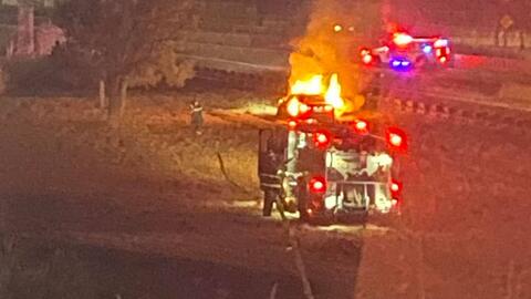 Police say at approximately 3:17 a.m., they received a call reporting a vehicle fire on Route 1&9 north near Newark International Airport.