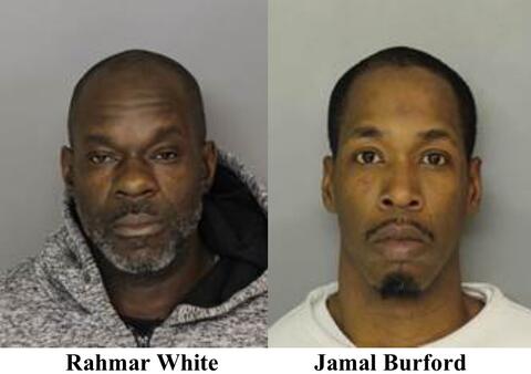 The two males, later identified as Rahmar White, 45, and Jamal Burford, 38, both of Newark, exited the convenience store running but were immediately apprehended by police.