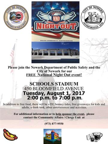 The Newark Police Department has scheduled an evening with the community as the city's Night Out event is designated at the Newark Schools Stadium.