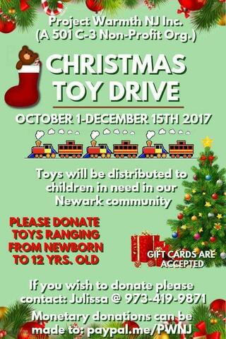 Newark's Project Warm is currently running a toy drive to assist Essex County low-income families for their 2nd Annual Christmas Event that will be held in December.