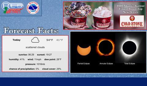 As the community awaits a total eclipse set for Monday, the National Weather Service reports mostly clear skies and a light breeze to start the day, providing an ideal backdrop for the celestial spectacle.