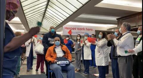 Director Ambrose said Lt. Hector Arocho exited the hospital's main doors on Osborne Terrace with cheers from hospital doctors, nurses, and his Newark Police colleagues.