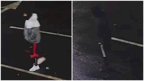 Police said that the first suspect is described as a heavy-set Hispanic male wearing a two-tone gray, white hooded sweatshirt, red and black Nike shorts, and white Nike sneakers.