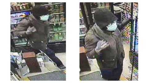 Police said that the suspect was wearing a blue face mask, black hooded sweatshirt, black-trimmed eyeglasses, a gray coat, gray gloves, blue pants with white stripes on the side and dark-colored sneakers. The suspect was also carrying a black backpack.