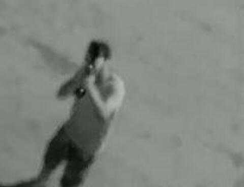 Upon arrival, officers obtained video footage that captured a man shooting a paint ball gun at a private surveillance camera in the area and damaging it.