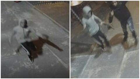 Police said that Suspect #1 is described as a thin Black male who was wearing a grey hooded sweatshirt, black pants with a white stripe, a grey mask, and black and grey sneakers.