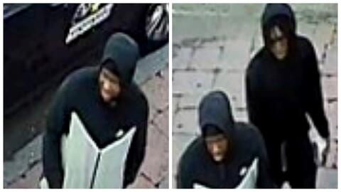 According to police, surveillance footage captured the suspects during the act as they shattered the passenger window of the victim's vehicle.