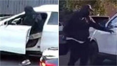 The suspect was also observed exiting the blue Honda Accord and stealing a white 4-door 2020 Mercedes Benz GLA, which was used in the shooting, authorities say.