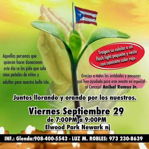 In the wake of damage caused by Hurricane Maria in Puerto Rico, a prayer vigil is set for September 29th at Elwood Park in Newark.