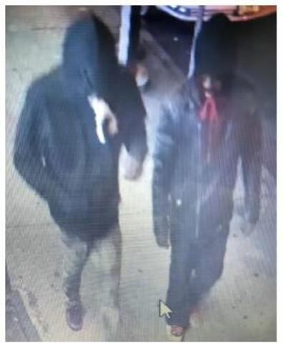 The second suspect wore all black hooded sweatshirt, black leather jacket and black sneakers.