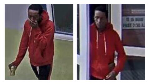 Detectives investigating the theft developed information identifying the pictured male as a suspect in this incident and described the individual as a thin built black male wearing a red hoodie, black sweatpants, and black sneakers police officials said.