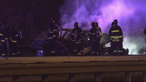 When firefighters arrived, they found a vehicle fully involved in flames after a collision that also involved a truck. Crews swiftly extinguished the fire then found an unidentified person.