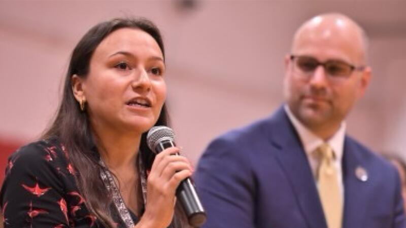 The announcement came before cheering students, staff, local dignitaries, and members of the media.
