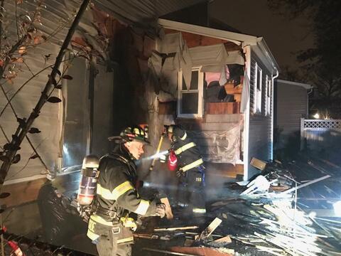 Upon arrival, they found an outside fire extending up the rear of the home.