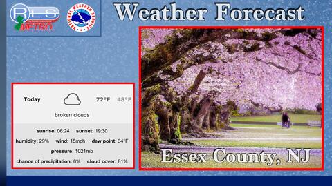 The National Weather Service said today's Northern New Jersey weather indicates a beautiful day of mostly sunny skies and mild temperatures.