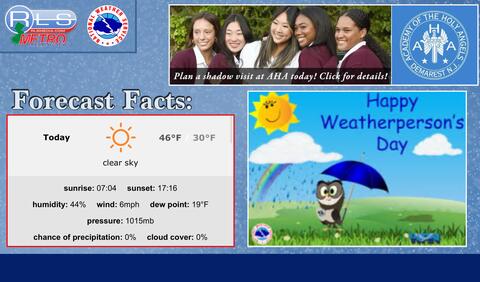 The National Weather Service said today's forecast predicts sunny conditions with a high near 44 degrees.