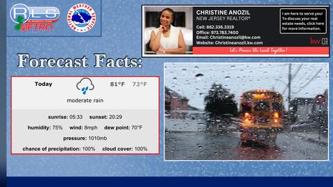 With a 70 percent chance of precipitation, my friends and family in Newark and the North Jersey region should be prepared for rain showers and possible thunderstorms.