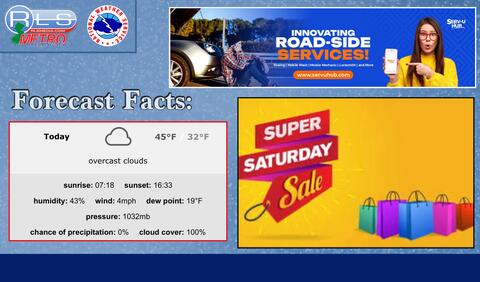 The National Weather Service forecasts a mostly cloudy Saturday, with highs nearing a comfortable 45 degrees. A light and variable wind is expected to shift southeast at about five mph in the afternoon, maintaining the day's mild ambiance.