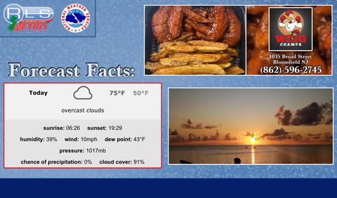 The National Weather Service forecasts a mostly sunny day, with highs reaching near 75 degrees, thanks to a calm wind shifting westward at around six mph in the afternoon.