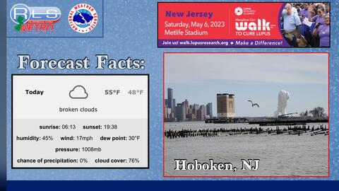 National Weather Service forecasters said residents of North Jersey can expect partly sunny skies and breezy conditions on this April day, with a high temperature near 59°F.