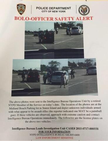 Early this morning, a retired NYPD officer spotted a group of reportedly six - four men and two women - with hijabs, at a Midland Beach parking lot with rifles in their hands in two cars with NJ license plates.