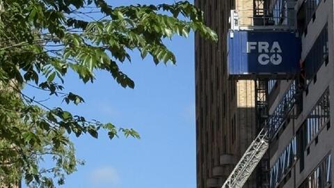 Upon arrival, first responders found a person trapped between an exterior elevator and the building under construction.