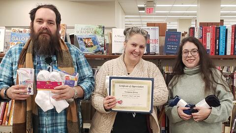 The Parsippany Main Library recently concluded a successful sock collection campaign, partnering with Brandon's Heart and Sole to gather over 800 pairs of socks for men, women, and children in need.