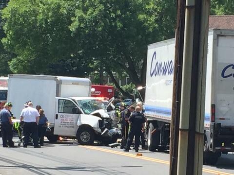 A head-on crash in Cranford involving a tractor trailer, left a 50-year-old man trapped and seriously injured this afternoon.