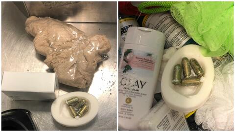 The gun was found taped and wrapped in an ace bandage along with a handful of bullets that were detected inside a hollowed-out bar of soap.