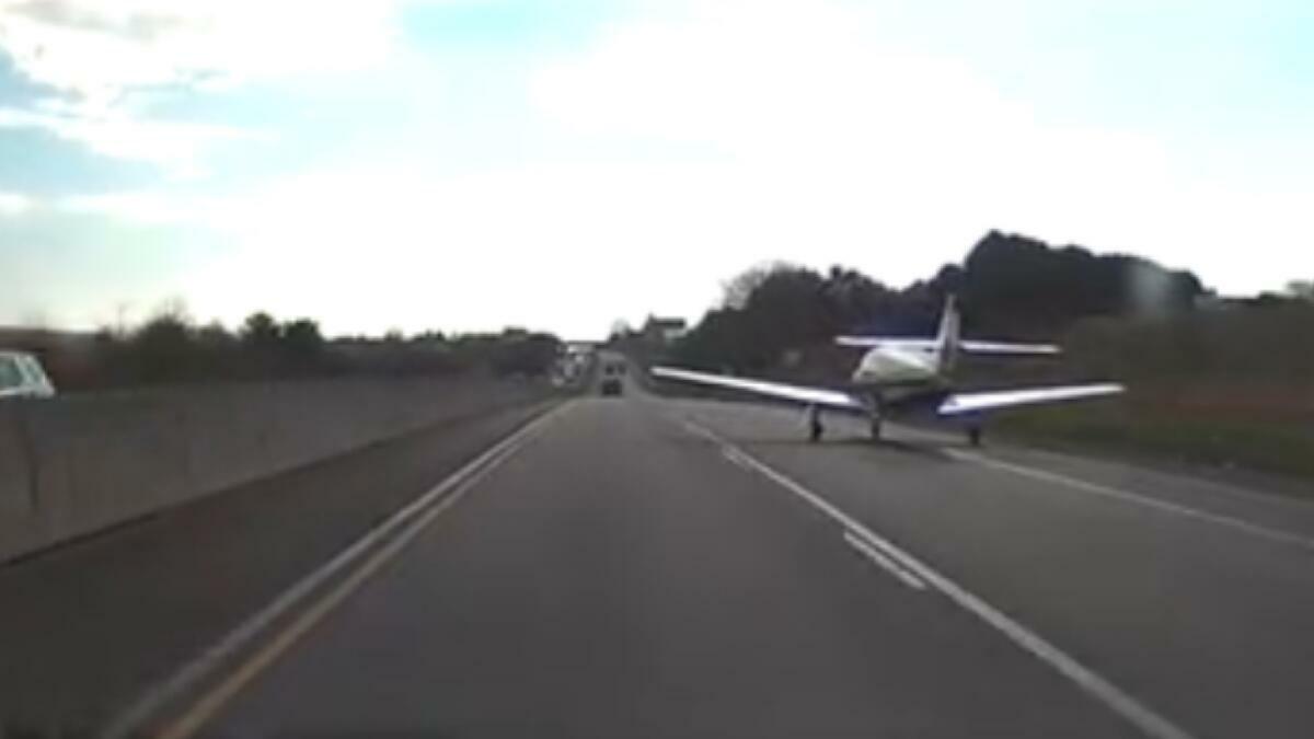 The pilot successfully brought the plane down on the highway, landing across active lanes of traffic.