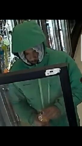 Police are asking for the public’s help in identifying the suspect, described as a 20-25-year-old black male, approximately 5’3”-5’5” wearing a green hooded sweatshirt and blue jeans, shown in the attached picture.