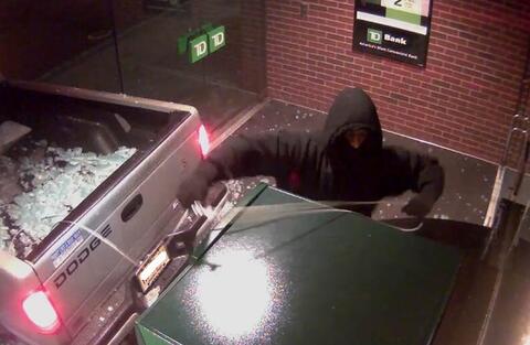 Police were notified by bank security personnel that multiple suspects were at the bank attempting to pull the ATM from the building using chains and a pick-up truck at approximately 4:36 a.m., Detective Sgt. Gerard Quinn said.