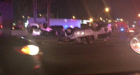 There were injuries reported in a violent crash that had both of the vehicles overturn on a highway that borders Newark and Elizabeth overnight.