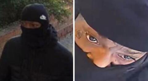 Officials say that the suspect has a tattoo between his eyebrows and was wearing a ski mask and black shirt with gray sweatpants and gray sneakers.