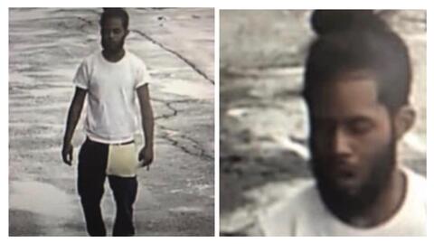 The suspect is described as having a slim build, with a dark brown complexion and long hair worn in a bun style. He wore blue pants and a white shirt.