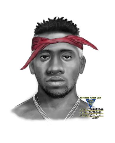 Police say rhe suspect is described as a black male in his mid 20’s, approximately 6’0”, very thin build, with hair dyed white on the sides.
