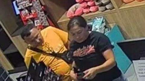 Hispanic female suspect and a Hispanic male associate entered the convenience store and removed a cell phone from a display before exiting the store.