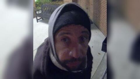 According to police, the suspect is described as a thin-built Caucasian male with a goatee wearing a grey hooded sweatshirt with red lettering.