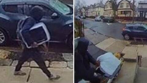 According to officials, surveillance footage showed a Black male suspect walking up to the property and removing the package at approximately 4:48 p.m.