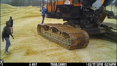 According to police, on Feb. 17th, at approximately 2:36 p.m., the juveniles were captured on video surveillance climbing onto the excavator and throwing stones at the windows, causing approximately $1,000 worth of damage.