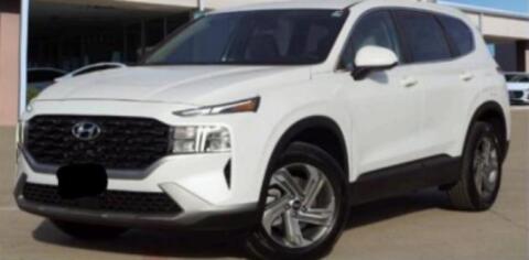 Police are searching for a 2021 white Hyundai Santa Fe that has significant front-end damage as well as driver’s side mirror damage.
