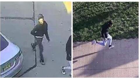 Officials say, he is described as a light-skinned male wearing a black hooded sweatshirt, two-tone blue pants, white sneakers, and a black face mask.