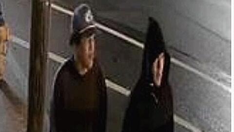 The second suspect was seen in a black hooded sweatshirt, black Adidas pants with the brand's distinctive stripes, and light-colored sneakers.
